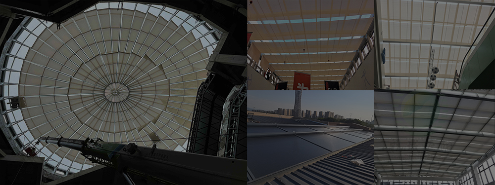卷軸式方案,面料運行方向與原有結構貼合度高,最大程度保持原有屋面結構美觀